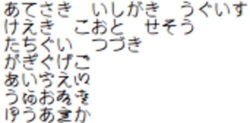 それぞれ9pt、12pt、24ptの表示結果。変体仮名もつくってみた。 他のフォントと混植するとずれる。 (サブピクセルレンダリングされているので、環境によっては変に色が滲んで見えるかもしれない)
